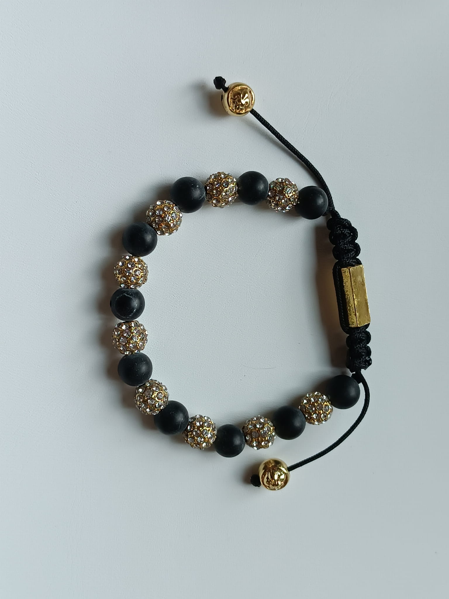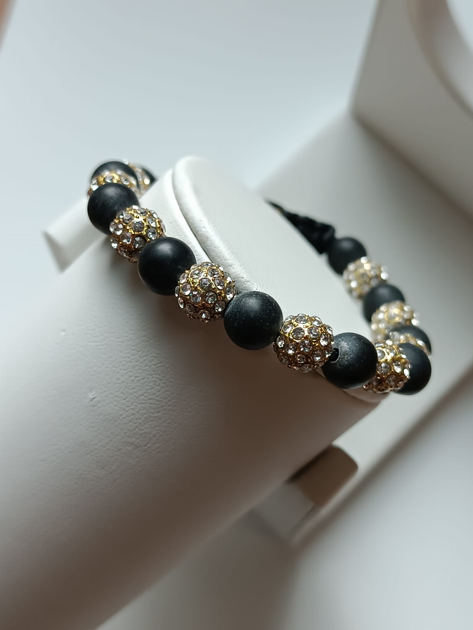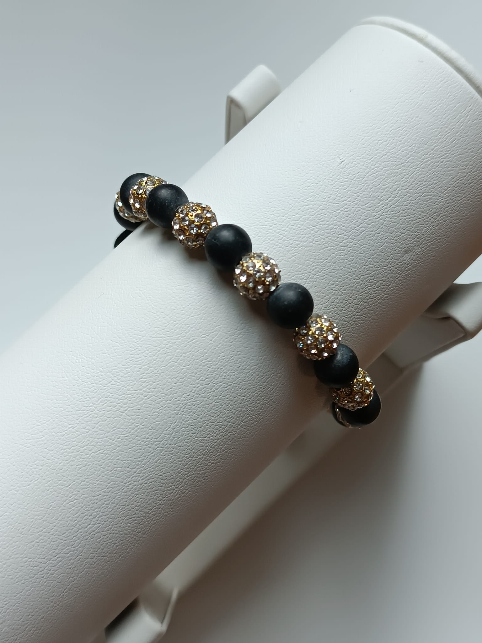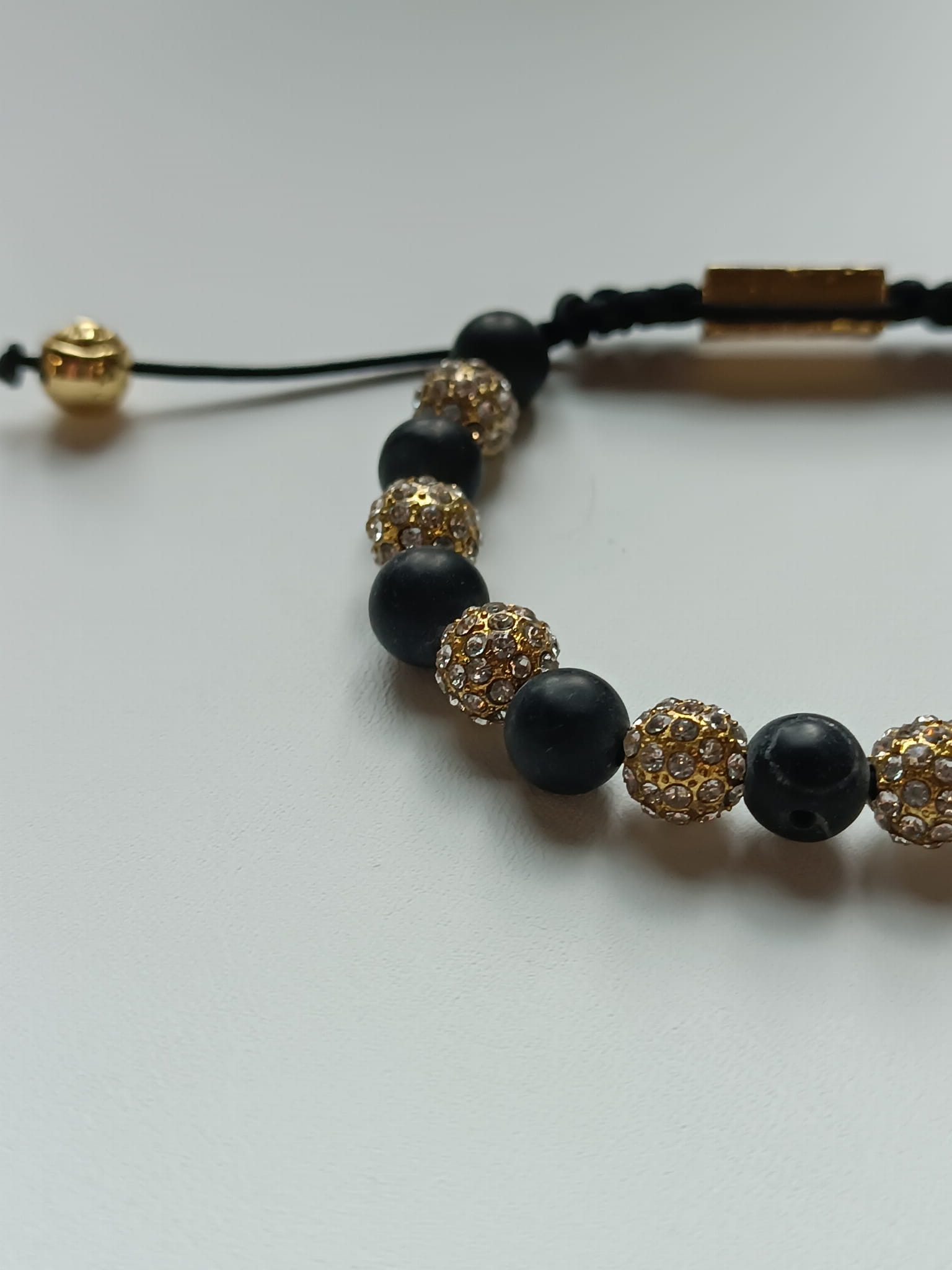 Bransoletka pleciona kulka czarny mat pozłocenie cyrkonia
