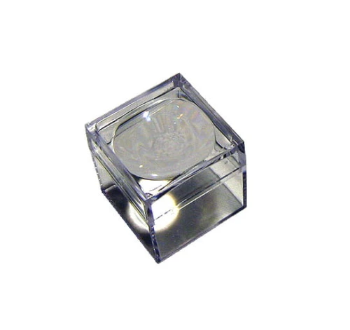 Pudełka plastikowe przezroczyste, górna pokrywka zawiera lupę o powiększeniu 2x.