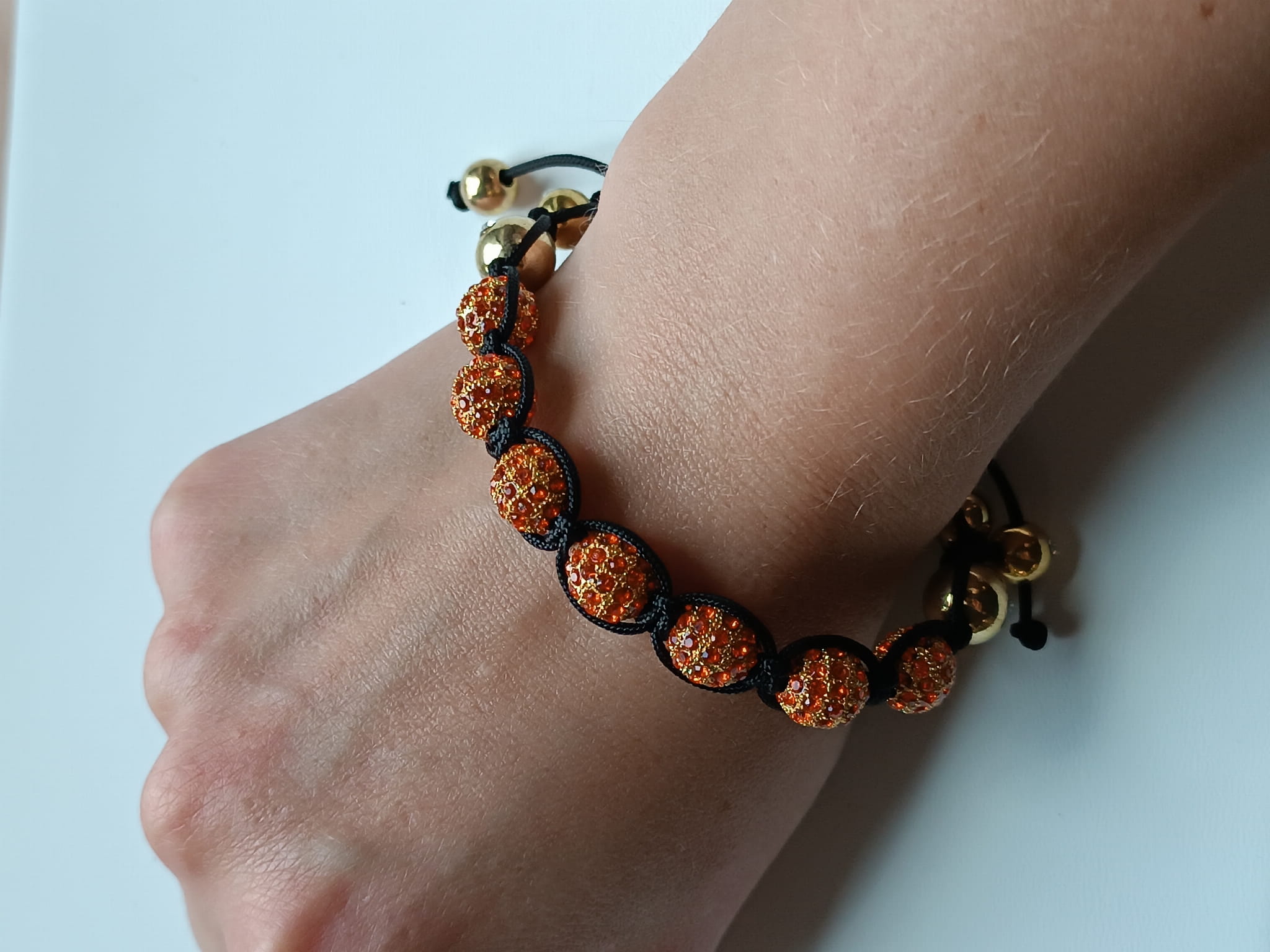 Braided orange bracelet with zirconia