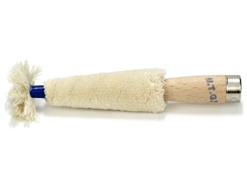 Szczotka wykonana jest z bawełnianych nitek nocowanych na drewnianym trzpieniu stożkowym.