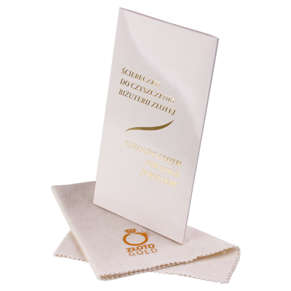 Ściereczka SILBO do wyrobów wykonanych z czerwonego, białego, żółtego złota, a także platyny i wyrobów pozłacanych. Wyroby szczególnie zabrudzone należy polerować zwilżonym rogiem ściereczki a następnie przecierać na sucho.