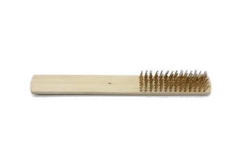 Sześciorzędowa szczotka wykonana z mosiężnego drutu o grubości 0,10 mm w drewnianym uchwycie. Doskonały do czyszczenia lub teksturowania powierzchni na miękkich metalach.