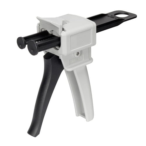 Ręczny wyciskacz w postaci pistoletu do podwójnych kartuszy 50ml w systemie mieszania 1:1 i 1:2. Ułatwia dokładne dozowanie dwuskładnikowych klejów epoksydowych, poliuretanowych i hybrydowych.