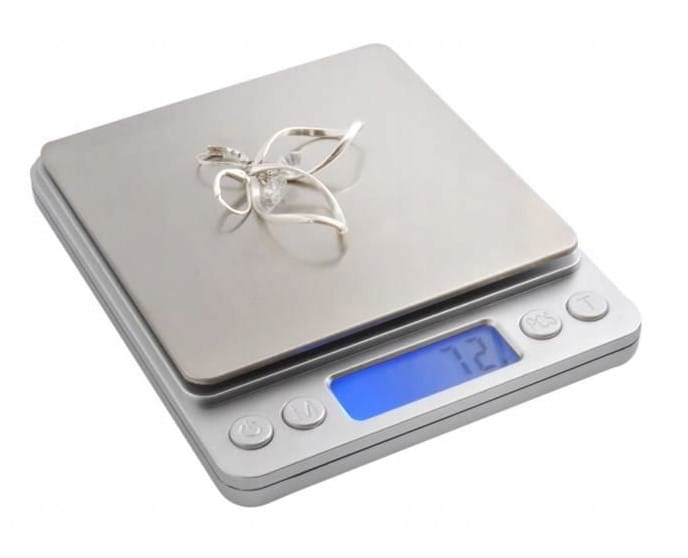 Elektroniczna waga jubilerska ważąca z dokładnością do 0,1g. Sprawdzi się wszędzie tam, gdzie potrzebna jest duża precyzja i niewielkie rozmiary – wagę z łatwością można schować do kieszeni.