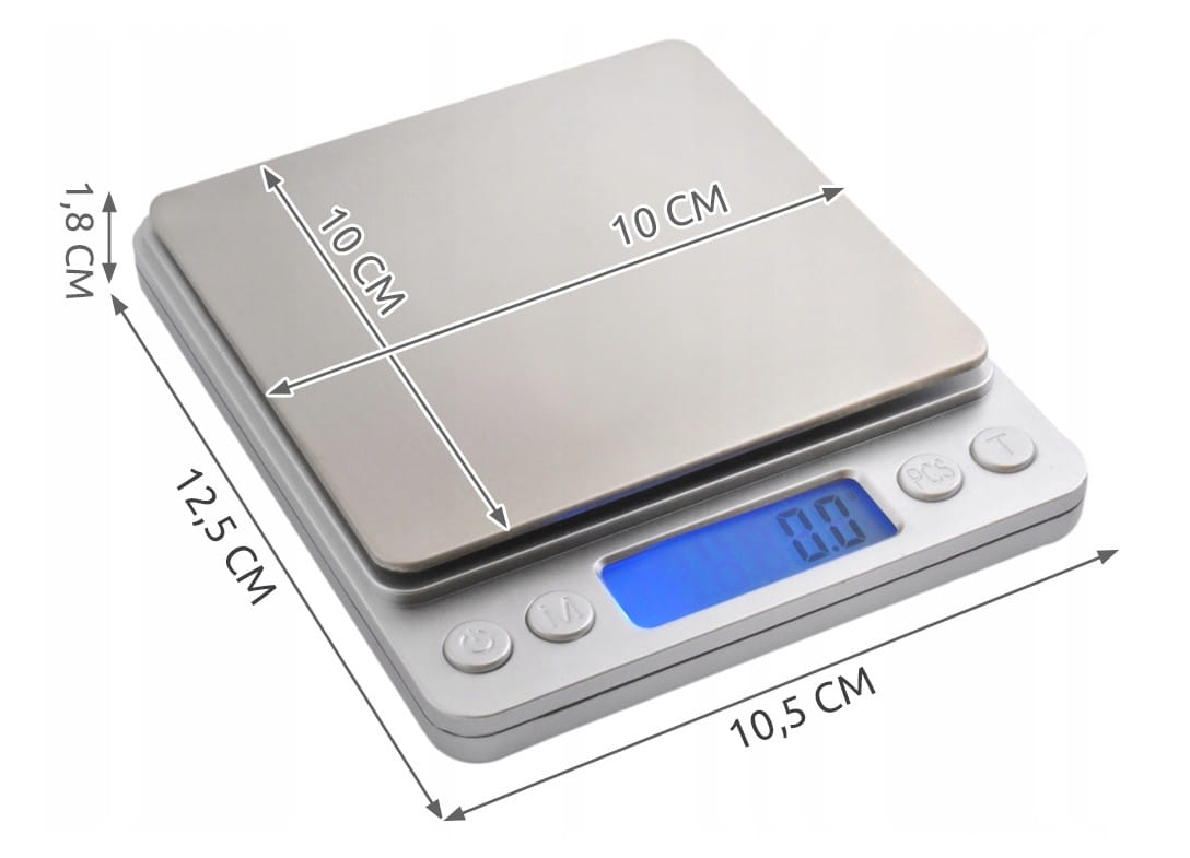 - wymiary wagi (dł/szer/grub): 12,5x10,5x1,8cm