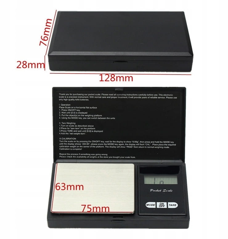 - Wymiary wagi: 128 x 76 x 28 mm