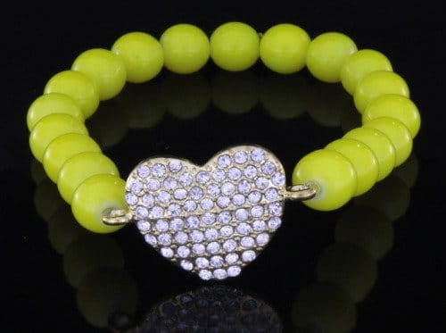 Neon yellow bracelet with heart on elastic