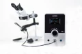 - Nowy ulepszony mikroskop który zapewnia stałe doświetlenie pola roboczego, może być teraz użytkowany jako osobny w pełni wyposażony mikroskop nie tylko do spawania.