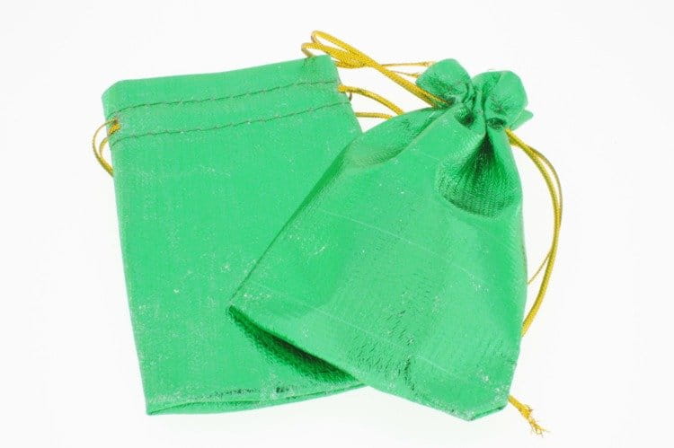 Shiny green jewelry pouch small 10x7 cm