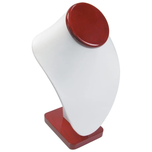 Ekspozytor popiersie białe z wykończeniem drewnianym.
