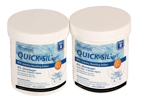 Chemoutwardzalna guma dwuskładnikowa CASTALDO ® Quick Sil ® jest gumą silikonową. Guma bardzo dobrze odwzorowuje kopiowany model, jest bardzo trwała i elastyczna. Może być stosowana do tworzenia form z wzorów organicznych i innych elementów, które może uszkodzić temperatura. Podczas wulkanizacji nie wykazuje żadnego skurczu.