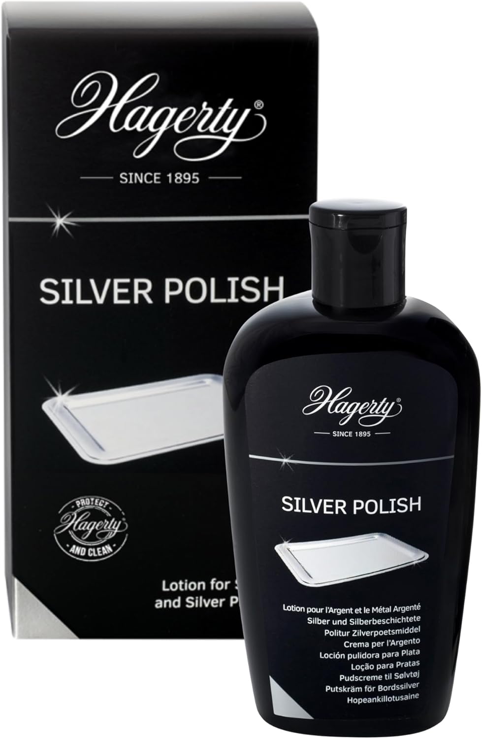 Hagerty Silver Polish czyści, poleruje i rozjaśnia srebro oraz przedmioty posrebrzane. Zawiera substancje, które zapobiegają utracie połysku przez kilka tygodni. Pozostawia warstwę ochronną zapobiegającą utlenianiu.