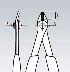 - Precyzyjnie ukształtowane końcówki pozwalają ciąć także gęsto ułożone przewody o średnicy od 0,2 mm