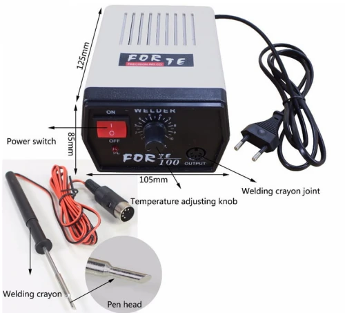 Wydajna lutownica do łączenia, cięcia i tworzenia elementów woskowych. Lutownicę można stosować do naprawy drobnych wosków i lutowania dużych elementów.