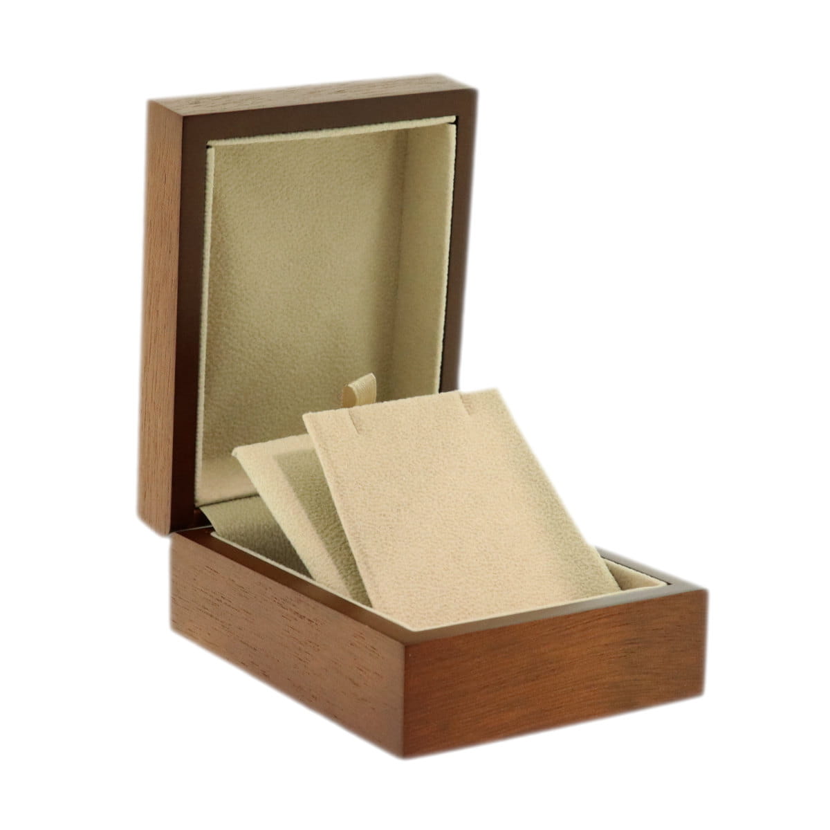 To piękne klasyczne, drewniane pudełko na kolczyki i wisiorek HWE9 z wnętrzem z beżową fakturą a'la polar.