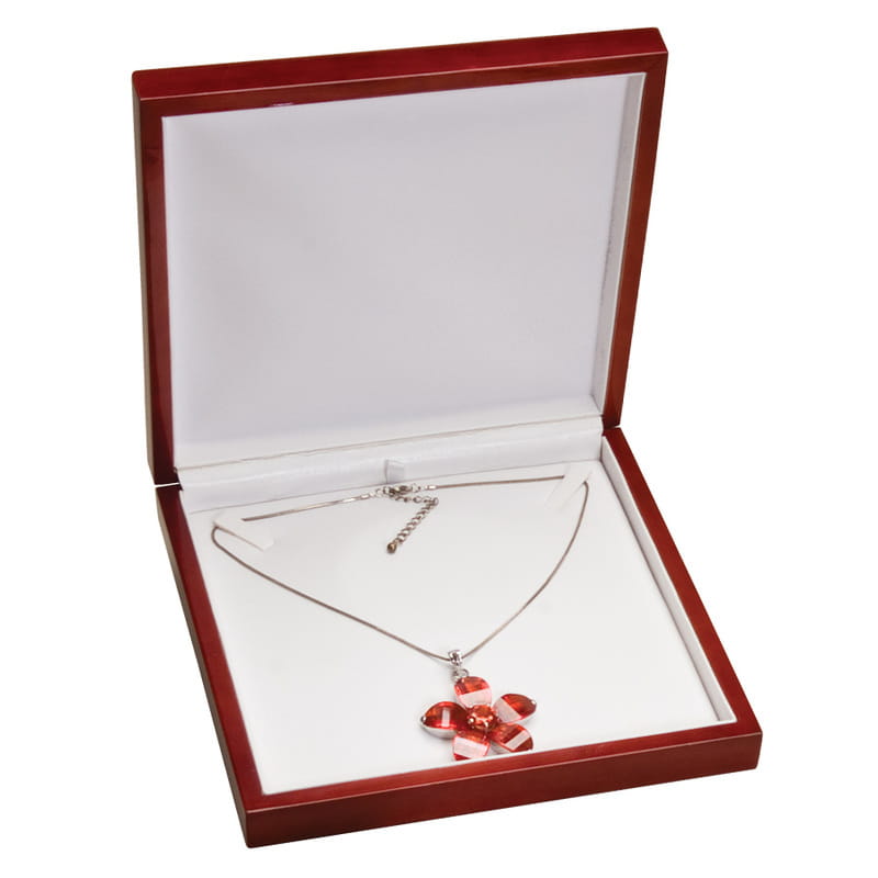 To piękne klasyczne pudełko na naszyjnik WN10 z drzewa różanego z wnętrzem premium z białej miękkiej sztucznej skóry.