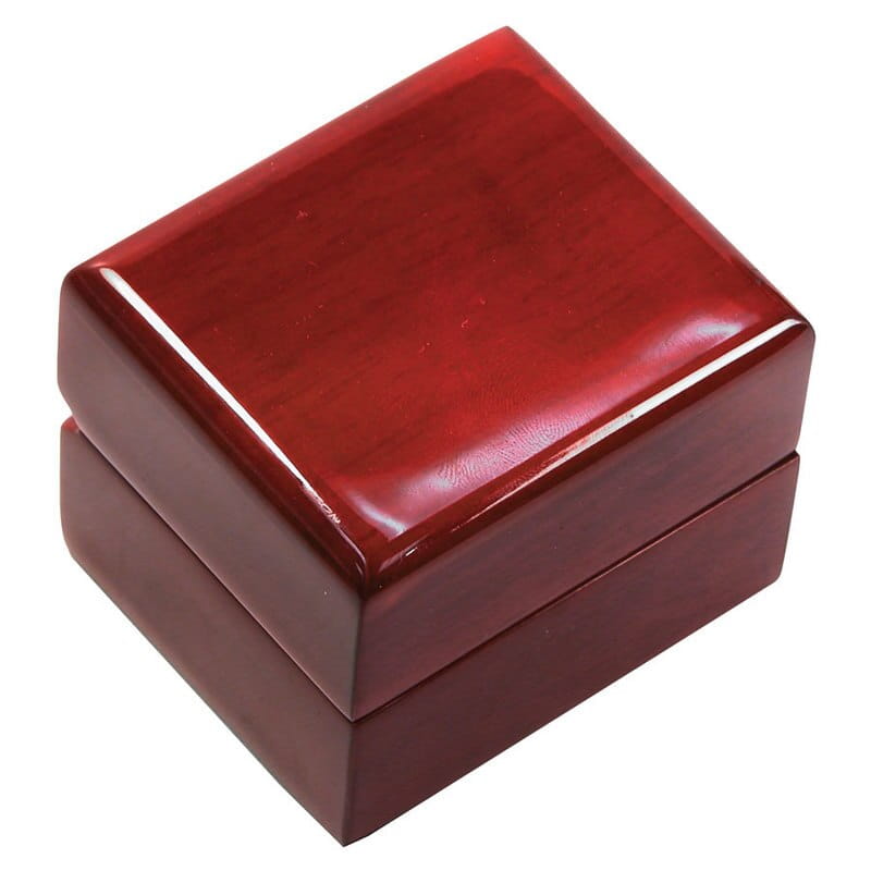 To piękne klasyczne pudełko do pierścionków WR3 z drzewa różanego z wnętrzem premium z białej miękkiej sztucznej skóry.