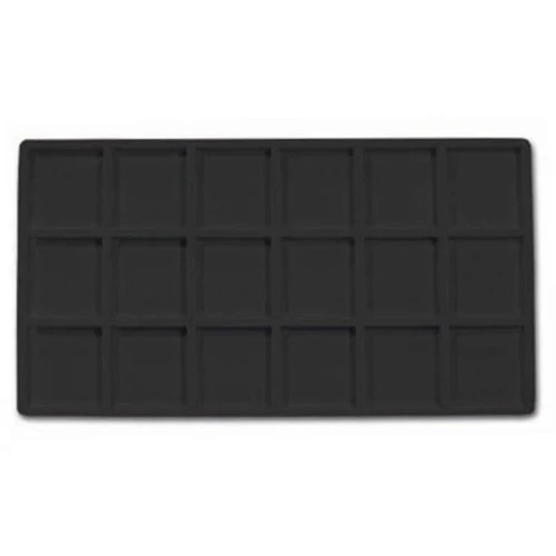 Wkład plastikowy 18 przedziałowy czarny flokowany do palet plastikowych.