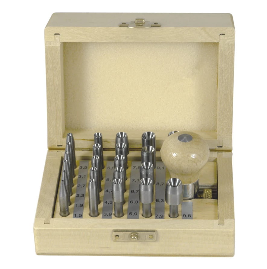 22 sztuki zakuwaczy od rozmiaru 1,5 mm do 9,9 mm