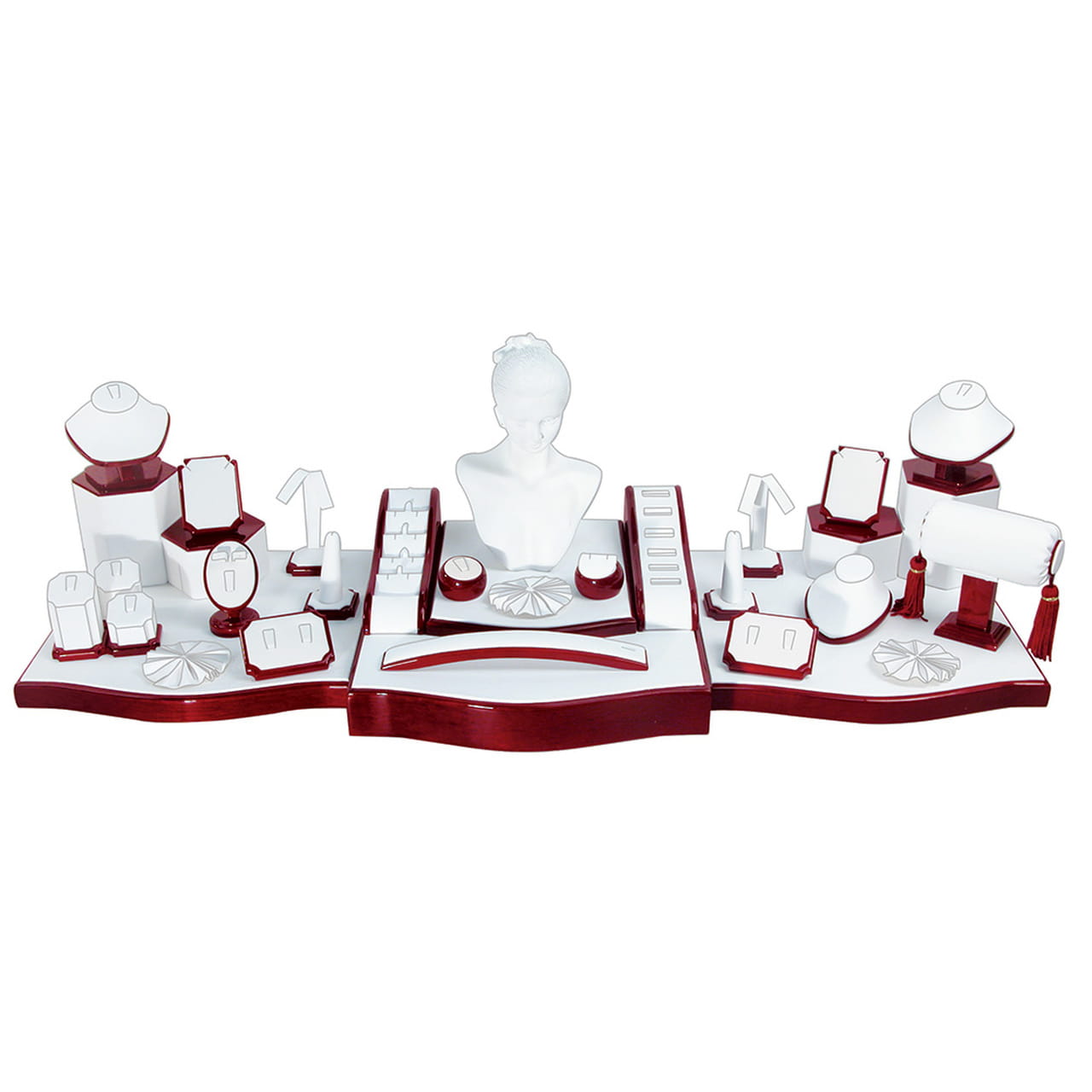 33-częściowy zestaw ze białej sztucznej skóry z błyszczącym wykończeniem z drzewa różanego.