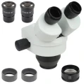 W zestawie soczewki 10X i obiektyw 0,5X. Zakres powiększenia wynosi od 7X do 45X.
